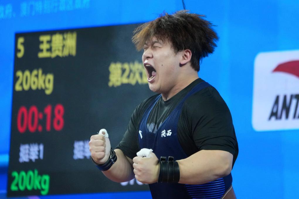 新华社东莞11月20日电(记者杨博一黄浩源)第十五届全国锦标赛举重项目20日决出最后两枚金牌。青年运动员王贵洲获得男子109公斤级冠军,为陕西队夺得首枚全国举重金牌。河北老将张锡良在男子109公斤以上级比赛中获得第一名,并最终在四届全国比赛中夺得第一枚金牌。 11月20日,陕西队的王贵州庆祝挺举比赛成功举起。新华社记者 杨晨光 供图 在当天下午举行的男子109公斤级抓举比赛中,年近18岁的王贵洲以第三次举重178公斤获得第一名。四届全国冠军山东选手杨喆以176公斤紧随其后。参加挺举比赛后,王贵洲第三次挑战208公斤级失败。第三次尝试,但以总成绩384公斤获胜。 “教练告诉我,这是陕西66年来在全国(举重)比赛中获得的第一枚金牌,我很高兴!”说。当老将杨泽登场时,他两次机会都举起了195公斤。在最后的挺举中,他将体重增加到了230公斤。上台后,这位老将并没有完成升降。相反,他俯身亲吻吧台,然后踢掉战靴,宣布谢幕。赛后混合矿区,杨喆拥抱向王贵州表示祝贺。虽然对自己“五连冠”的纪录结束感到失望,但他表示,他知道这就是竞技体育的吸引力。 “退伍军人就是退伍军人,我们需要新的人才来取代我们。”湖南队的奚长荣获得银牌,吉林队的任祥林获得铜牌。 11月20日,山东省队运动员杨泽亲吻栏杆进行挺举比赛。新华社记者 杨晨光 摄 “首枚金牌”和谢幕的故事在晚间重演。男子109公斤以上级,河北队的张锡良以抓举182公斤获得第一,挺举220公斤和230公斤紧随其后,夺得冠军。广西壮族队的梁敏华在抓举中只有一个有效成绩,但他完成了全部三项挺举,第三次举起的成绩为229公斤,排名总成绩第二位。 11月20日,河北队队员张锡亮参加挺举比赛。新华社记者杨晨光供图。最终,张锡良以412公斤的总成绩夺得个人首枚全国金牌。他连续三年参加全国锦标赛,终于实现了第四次夺冠的梦想。对此,他表示:“我已经想象过这一刻任何时候,但我现在不能说什么。我很兴奋!”11月20日,北京队队员艾云参加挺举比赛。新华社记者杨晨光拍摄了三夺全国冠军并获得铜牌的北京队艾云。他坦言,告别赛后有些失望,但对自己的表现还是相当满意。“我完成了我的期望,完成了我的使命。”