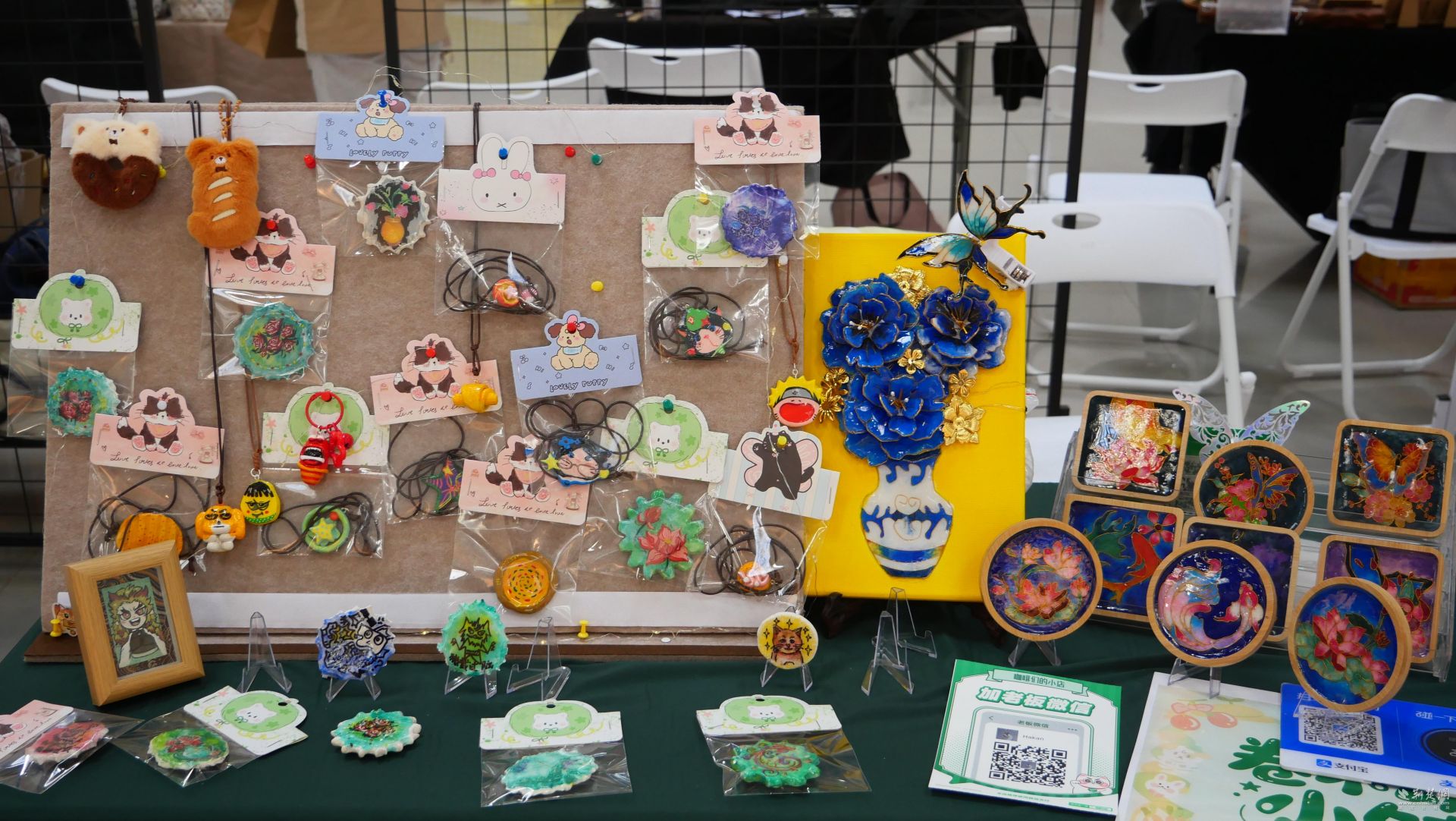 作为本次“主战场”活动现场,南中民族大学光谷艺术馆文创优秀作品展暨文创市场活动热闹非凡。一楼展厅静静地陈列着120个展位的特色作品,有充满活力的中国传统牡丹画、用羽毛纸制成的安静的女孩、还有金箔装饰的漆手镯。从巨幅中国画到精美的手工作品,每一件作品都呈现出中国艺术杰作的集合。体现了我校学生对传统文化的创造性转化、创新性发展的深刻思考。