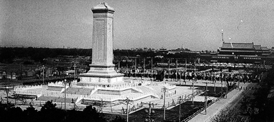 1958年5月,在天安门广场的人们的英雄的纪念碑。资料来源:北京每日